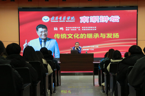 为加深学生对传统文化的了解,继承弘扬传统文化,12月14日中午,大学生艺术团特邀著名相声表演艺术家陆鸣做客南湖讲坛,在成学楼106室为广大师生作《传统文化的继承与发扬》讲座。校党委副书记邹星庐出席,招就处处长朱勤超、校团委书记罗萍、大学生艺术团全体师生、各学院学生代表共同聆听。