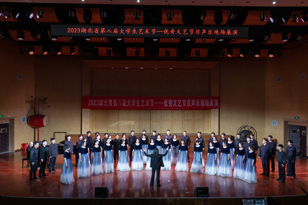 近日,湖北省第八届大学生艺术节开幕,经评选委员会评选,beat365大学生艺术团徐晓蕾老师指导春蕾合唱团选送的两首作品《满江红》《雪花的快乐》成功入选本届艺术节优秀文艺节目现场展演。