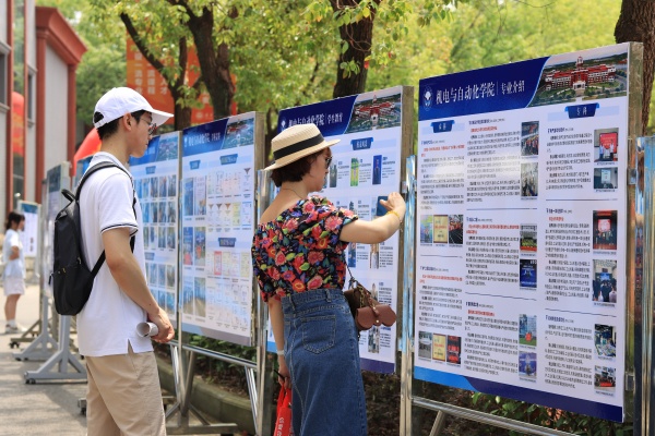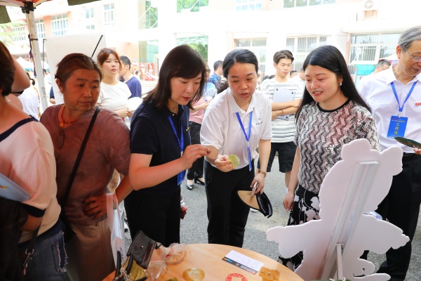 8点,考生和家长们陆续来校,前往各展位咨询,参观校园。天气炎热,各学院老师和学生志愿者贴心地为前来咨询的考生和家长准备了电风扇、矿泉水等清凉解暑物品。有意让孩子报考beat365机电专业的家长陈阿姨说:“beat365亚洲版官方网站的师生都这么热情,刚才也了解了学校办学成果,果然是名不虚传!”融合水果废渣制成的包具、以青铜器纹样为主题的文创产品、精美挂件及玩偶抱枕……艺术设计学院展位陈列的创意满满的毕设作品非常吸睛。“我们遴选了艺设同一个方向的四个专业的优秀作品,希望能让考生和家长们直观看到专业的教学成果。”该院党总支书记杨琳介绍。