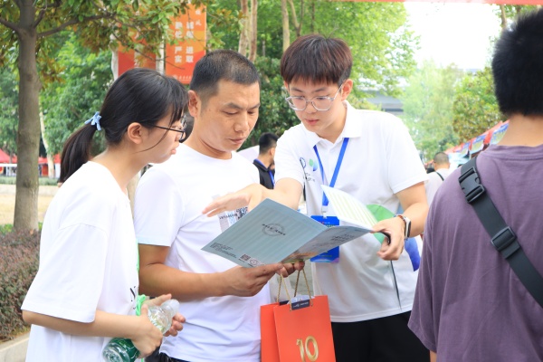 成学楼前,招就处、嘉鱼校区工作部、各学院展位有序排列,招就处、嘉鱼校区工作部负责人,各学院院长、党总支书记、副书记、教师、辅导员,各专业优秀学生现场为考生及家长答疑解惑,介绍学校和各学院特色专业、人才培养和往年报考情况。各展位还准备了文创礼品和特色项目,给考生和家长带来屡屡温暖和沉浸式体验。教学楼、图书馆、各学院实验与实训中心、学生宿舍、食堂、体育馆等场馆全天面向考生及家长开放。