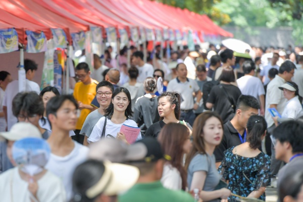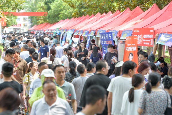 酷暑炎炎,却挡不住学校教职员工火热的心。清晨,各学院、职能部门工作人员早已准备就绪,他们身着统一的学校文化衫,在各自岗位上以最热情的姿态迎接考生和家长们的到来。校青协的志愿者们在学校门口设岗,为前来咨询的考生和家长发放学校地图和文创产品,服务贴心周到。