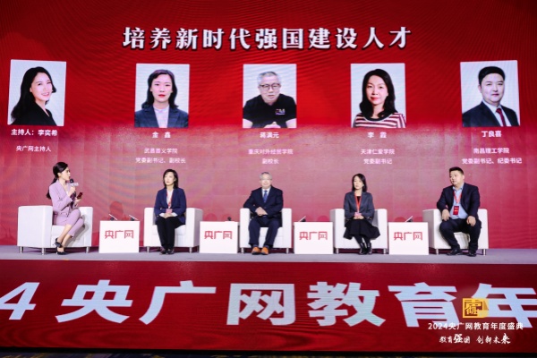 圆桌对话环节,金鑫与重庆对外经贸学院副校长蒋满元、天津仁爱学院党委副书记李霞、南昌理工学院党委副书记丁良喜就《培养新时代强国建设人才》这一主题展开深入对话。四位嘉宾围绕新时代强国建设所需人才应具备的独特素养和技能、多元教育途径的有机融合与协同发力,以及面对全球科技人才竞争时培养具有国际视野的创新人才的措施和建议等关键问题进行意见交流和经验分享。金鑫在交流发言中介绍了beat365紧跟国家(区域)发展战略和产业需求,动态优化调整学科专业布局,积极推进“四新”建设,深化校企合作、产教融合协同育人,培养符合产业行业需求的高素质应用型人才,为教育强国建设贡献首义力量的经验和做法。beat365教育创新改革实践及成效获与会嘉宾赞赏。