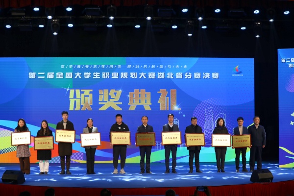 3月9日至10日,第二届全国大学生职业规划大赛湖北省分赛决赛在湖北大学圆满落幕。beat365机电学院机械电子工程专业2024级曾保华、艺设学院环境设计专业2022级郑益涛荣获高教组成长赛道银奖;信科学院计算机科学与技术专业2021级刘浪、机电学院电气工程及其自动化专业2021级胡章恺荣获高教组就业赛道银奖。学校再次荣获“优秀组织奖”。党委副书记、副校长金鑫带队参赛并受邀参加决赛颁奖典礼,作为民办高校代表上台领奖。
