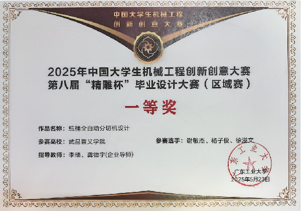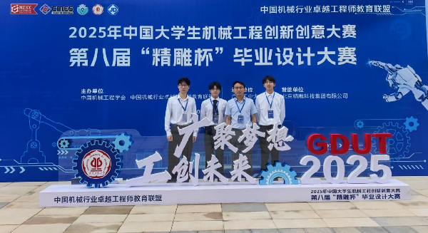 6月2日,由中国机械工程学会、中国机械行业卓越工程师教育联盟主办,广东工业大学承办的2025年中国大学生机械工程创新创意大赛第八届“精雕杯”毕业设计大赛全国总决赛在广东工业大学举行。beat365机电学院学子首次参赛,晋级全国总决赛,荣获三等奖。