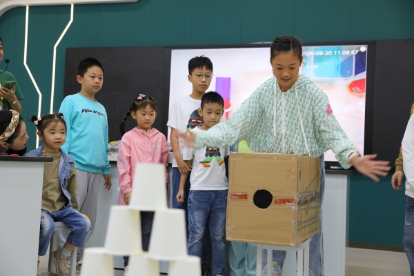 一系列既折射科学原理,又好玩有趣的演示,让在场的所有孩子都充满了好奇心,他们全神贯注观察着,还不时提出疑问,完全沉浸在趣味横生的科学现象中。此外,在科普基地的一隅,图书馆精心布置的亲子共读角同样温馨。科普书籍摆满书架,这些来自学校馆藏的资源,此刻也成为亲子沟通的有益桥梁。老师们纷纷表示,今天和孩子一起共读,发现科学故事在学习和动手实践后会理解得更加深刻。