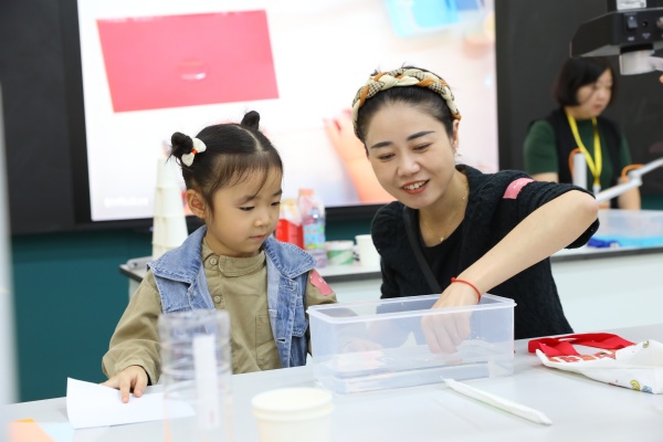活动现场,在老师和志愿者的引导下,亲子家庭从电磁感应探秘到能量转化,从几何光学到自制照相机实践,通过原理讲解、互动实验和亲子协作,让硬核科技变得触手可及。