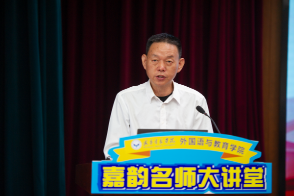 邹星庐在致辞中表示,启动“嘉韵名师大讲堂”是学校深化教育教学改革、落实立德树人根本任务的重要举措。外国语与教育学院积极落实学校发展战略,在已成功举办两届“嘉韵·春之声”外语文化节的基础上,精心策划“嘉韵名师大讲堂”系列活动,为全校二级单位推进教育教学创新提供了有益的参考与启发,同时也是学院创新人才培养模式的积极探索。他指出,当前,高等教育正面临前所未有的发展机遇与挑战,作为一所应用型本科院校,我们必须坚持面向产业需求、面向区域发展,不断创新人才培养模式。“嘉韵名师大讲堂”通过邀请学界专家、行业精英开展专题讲座,帮助学生拓展学术视野、了解行业动态、提升综合素养,这与学校培养“有理想、有本领、有担当”的时代新人目标高度契合。他希望学院以开办大讲堂为契机,将名师智慧转化为教学创新灵感,让课堂更有深度、更有温度,也希望同学们能珍惜每一次与大师对话的机会,在交流中碰撞思想,不仅要能“听懂一堂课”,更要能“看清一条路”,在名师的言传身教中,理解“何为大学之学、何为时代之需、何为青年之责”,真正实现从“知识接受者”到“创新实践者”的蜕变,在专业领域深耕细作,增长才干,努力成长为社会需要的高素质应用型人才。