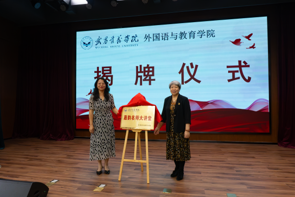 在热烈的掌声中,李雪和梁小华共同为“嘉韵名师大讲堂”揭牌。
