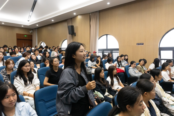 梁小华介绍了“嘉韵名师大讲堂”的规划与愿景。她表示,外国语与教育学院的使命是搭建桥梁,连接中国与世界、连接传统与现代、连接同学们的今天与无限可能的未来。学院希望通过“嘉韵名师大讲堂”,在同学们叩开专业学习大门之初,向大家展示语言与教育的深邃、广博与美妙,让大家领略到英语是一种力量、一种韵律、一种智慧、一种趣味、一种视角,更是一种能力,是我们跨越山海、连接世界、沟通中外、胜任全球的基石。她还介绍了接下来系列讲座将要涵盖的主题,强调语言对丰盈思想和培养思维的重要性,鼓励学生成长为一个更有智慧、更有温度、更有担当的自我。