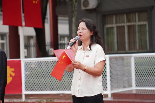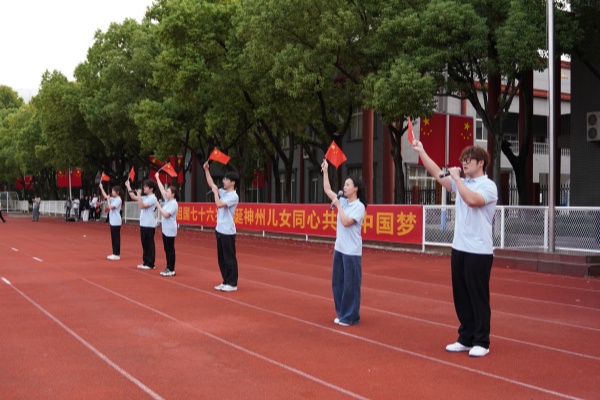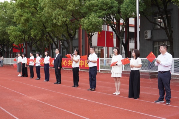 “五星红旗迎风飘扬,胜利歌声多么响亮……”随着熟悉的旋律在校园中回荡,师生们手持五星红旗,和着节拍整齐挥舞,深情合唱《歌唱祖国》,用质朴有力的歌声诠释对祖国母亲最纯真的爱、最炙热的情,共同祝愿伟大祖国繁荣富强。