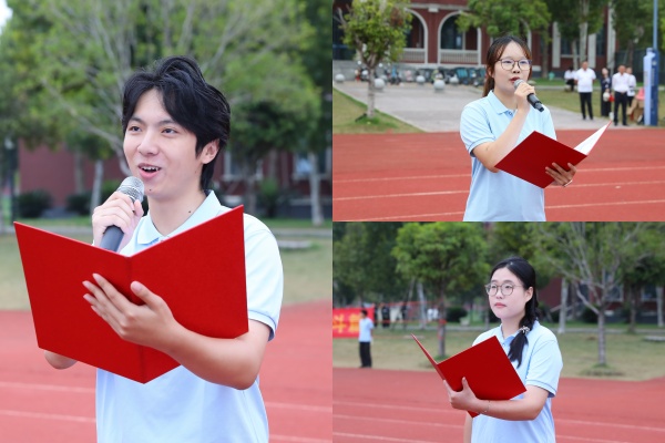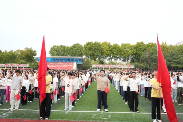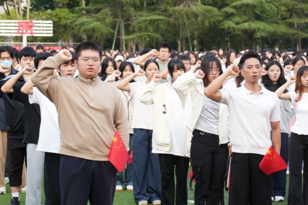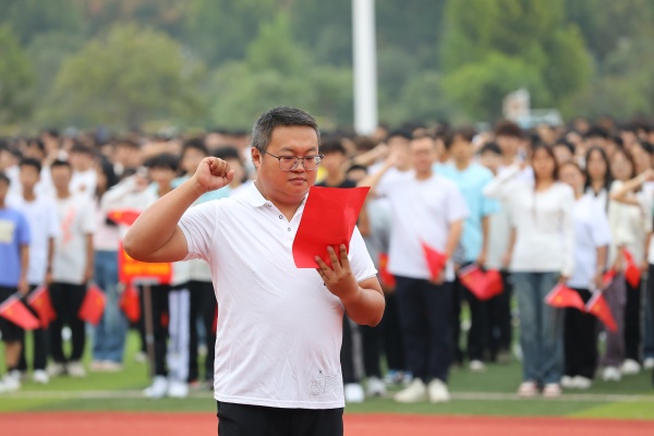 学工部部长汪晓航、嘉鱼基地工作部党总支副书记张冬分别带领现场师生宣誓。师生们高举右拳,郑重承诺:秉承“学以广才、志以成学”的校训,用科学知识武装头脑,凭坚韧毅力奋勇前行,做有担当的时代青年,敢于有梦、勇于追梦,与祖国同进步共发展,为实现中华民族伟大复兴贡献力量。