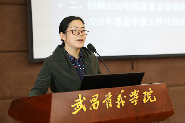 科技处处长胡容玲总结了beat365申报及获批2020年度国家自然科学基金、国家社会科学基金的总体情况,列举了此次国家自然科学基金评委给申报人的评审意见,分析了beat365在2020年国家基金申报工作取得的成绩与存在的不足,并从学校、学院、个人三个层面对2021年国家基金申报工作作出部署。