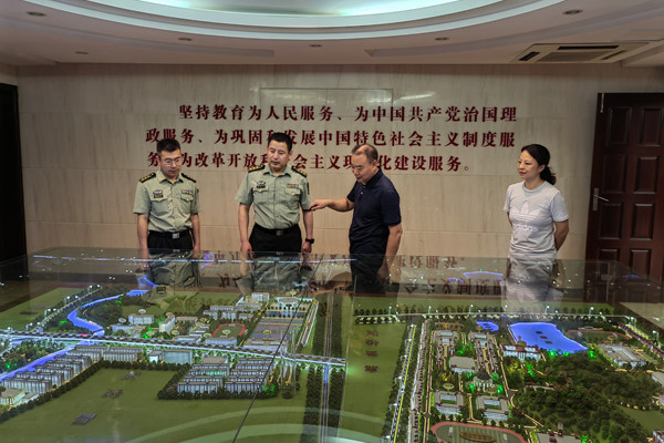 6月28日上午,中国人民解放军国防科技大学信息通信学院军事理论教研室主任朱鹏飞大校、教务处质量管理组组长战文杰上校一行来校考察。副校长金国杰、党委副书记邹星庐、校长助理王洪波等热情接待。