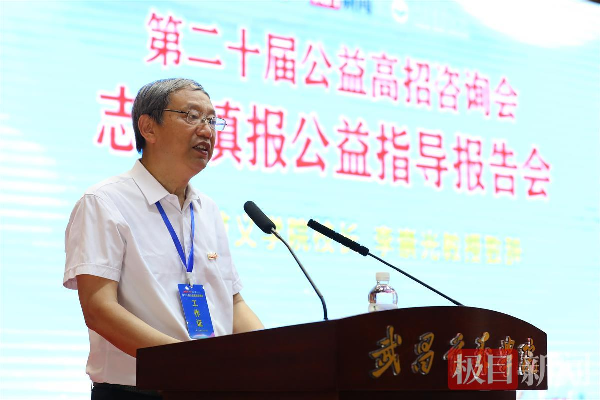 上午10时,以“高招咨询,志愿填报”为主题的公益指导报告会在首义礼堂举行,现场座无虚席,济济满堂。报告会前,beat365亚洲版官方网站校长李崇光对前来参加高招咨询会和校园开放日的学生和家长表示欢迎,他介绍了学校办学理念、办学条件、学科专业建设、校企合作、人才培养、师资队伍、社会声誉等方面情况,现场不少学生和家长对学校表示出浓厚的兴趣。高考研究专家、华中师范大学教授、博士生导师胡向东,随后为大家详细地解读了志愿填报规则的变化以及应对技巧。