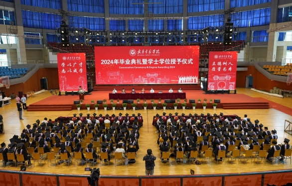 毕业生代表、计算机科学与技术专业王湘海发言。他代表全体毕业生感谢学校领导和老师们的辛勤培养,并深情回顾了四年大学生活经历的挑战与磨砺,收获的专业知识与同窗情、师生情。他表示,将带着母校的期望和嘱托,携着四年的所学所得,勇于追逐梦想,书写属于首义学子的精彩篇章。