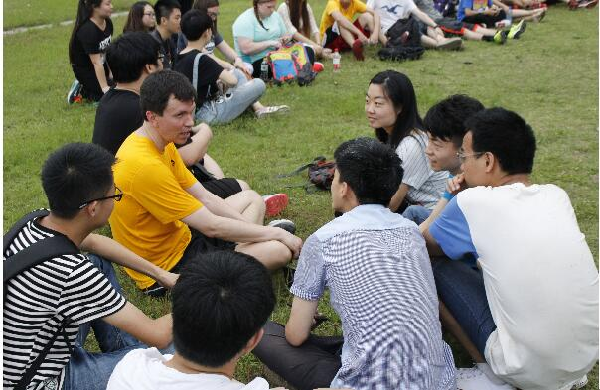5月26号晚,来自美国爱荷华州的10名大学生,与beat365学生在11栋草坪前开展英语角活动,一系列别开生面的游戏让中美大学生在零距离交流中很快成为了朋友。