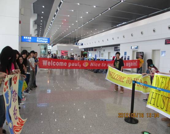 志愿者机场迎接美国夏令营成员